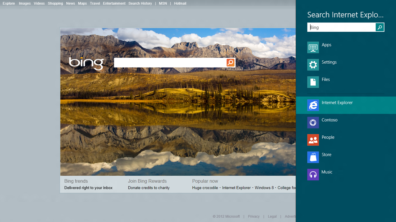Windows 7’de olduğu gibi, Windows 8’de de uygulama, ayar veya dosyalarınızı aramak çok kolaydır. Arama düğmesiyle, daha derinlerde aramalar yapabilirsiniz. Uygulamalarda veya internette arama yapabilir, örneğin e-posta uygulamasında belirli bir e-postayı hızlıca bulabilir veya Kişiler uygulaması altında arkadaşınızın Facebook’a koyduğu bir şeyi bulabilirsiniz. Aynı zamanda Başlangıç ekranından uygulamaların içinden arama sonuçları alabilirsiniz. İhtiyacınızın olduğu bilgi internetteyse, arama sonuçlarınızın içinde Internet Explorer’ı işaretleyin ve Arama sonuçlarını ayağınıza getirin. Windows 8 için tasarlanan uygulamalar Arama düğmesi kolayca kullanır ve siz daha fazla uygulama yükledikçe, film yorumları veya seans saatlerini, restoran yorumlarını ve hatta borsa bilgilerini (birkaç örnek vermek gerekirse) uğraşmadan görebilirsiniz. Klavye kullanıyorsanız, doğrudan Başlangıç ekranından arama yapabilirsiniz – sadece yazmaya başlayın, sonuçlar ortaya çıkmaya başlar. Uygulamalar ve ayarları görmek veya uygulamanın içinde arama yapmak için sonuçları filtreleyebilirsiniz.