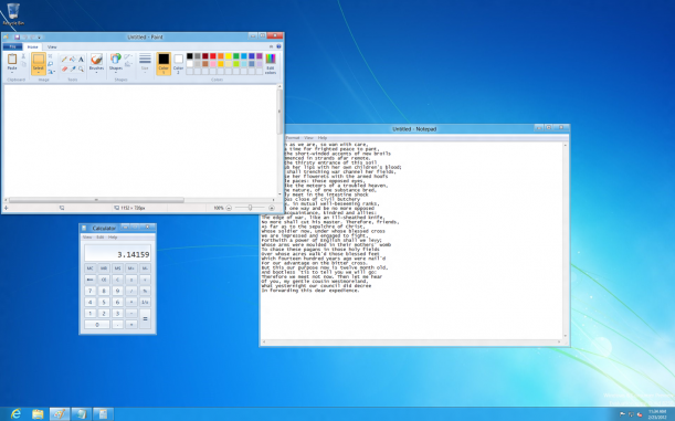 Fare ve klavyenizle çalışabilir, uygulamalarınızı Windows Görev Çubuğuna yapıştırabilir ve sağ tıklama ile alışık olduğunuz her şeye erişebilirsiniz (Başlat ekranına geri dönmek için farenizi ekranın sol alt köşesine getirin veya klavyedeki Windows tuşuna basın). Daha önemlisi, dizüstü bilgisayarınıza (veya herhangi bir x86 bilgisayara) Windows 8 Tüketici Önizleme Sürümünü kurarsanız, eski oyunlarınız, masaüstü uygulamalarınızı veya Microsoft Office’i emekliye ayırmak zorunda değilsiniz, tümü Windows 8 altında çalışır.