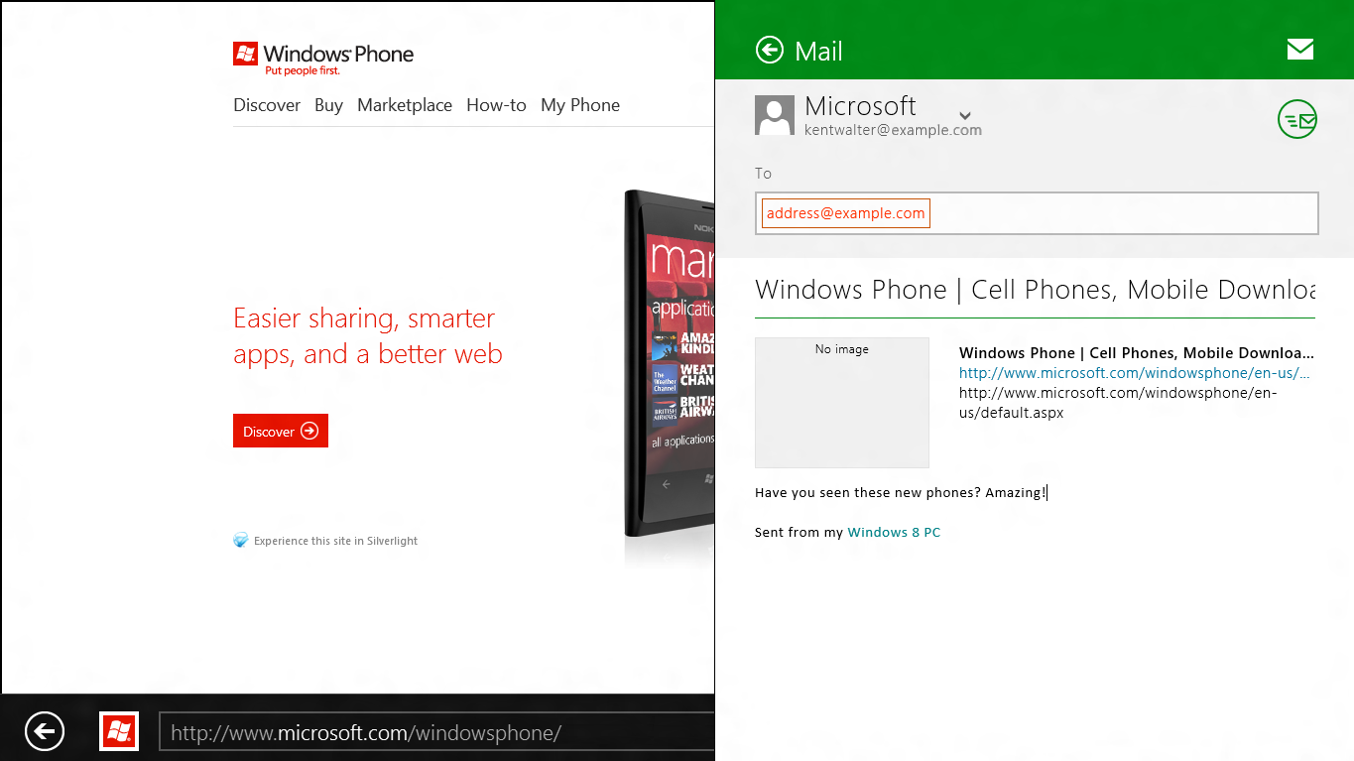 İnternette güzel bir şey okuduğumda veya beni güldüren bir resim gördüğümde, paylaşmayı severim. Paylaşma tılsımı bunu oldukça kolay hale getiriyor. Aramada olduğu gibi, uygulamalar Paylaşma tılsımını kolayca kullanabilir, siz de paylaşabilmek için uygulamanızı kapatmak zorunda kalmazsınız. Bilge sözleri e-posta uygulamasıyla veya harika fotoğrafları SkyDrive ile paylaşabilirsiniz. En sık kullandığınız uygulamalar çabuk erişim için listenin başında olur ve tek bir kişi veya tüm kişilerinizle aynı anda paylaşmayı seçebilirsiniz.