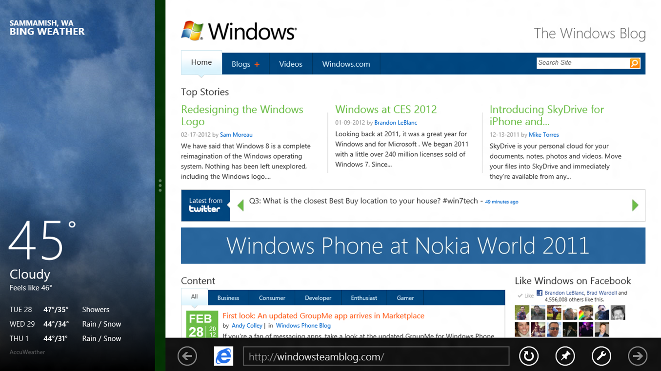 Windows 8 Tüketici Önizleme Sürümünü kurduğunuzda, bazı uygulamalar hazır olarak gelecektir. Bu uygulama önizlemeleri devam eden çalışmanın ürünüdür, ancak Windows 8 ile neler yapabileceğiniz ve uygulamaların bir arada nasıl çalıştığıyla ilgili bilgi verir. Hava DurumuFinans ve Haritalar uygulamaları Bing desteklidir. Bing ekibinin bu yazısına göz atarak Windows 8 için yaptıkları çalışmalar hakkında bilgi alabilirsiniz. Xbox ekibindeki arkadaşlarımızın da bazı güzel uygulamaları var. Xbox LIVE GamesVideo, Müzik ve Xbox LIVE Companionuygulamaları gelecek uygulamalar hakkında fikir veriyor. Major Nelson blog yazısında Xbox ekibinin çalışmalarına yer vermişti. Bakmaya değer.